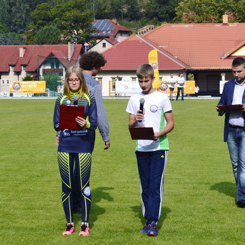 Kolejno dzieci z lubawskiej szkoły, Izabela Czura i Hubert Sajdak złożyły deklarację opieki nad stadionem i dbania o powierzone im dobro.
